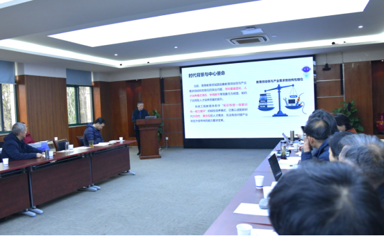 专业建设发展中心副主任崔汉国教授汇报2026年专业建设规划,明确以产教融合、AI赋能、项目制教学为核心指导思想,确立深化教学改革、强化专业建设等发展目标,以AI技术为赋能、产教融合为路径、项目制教学为抓手,培育适应未来产业的高素质应用型场景操盘手。