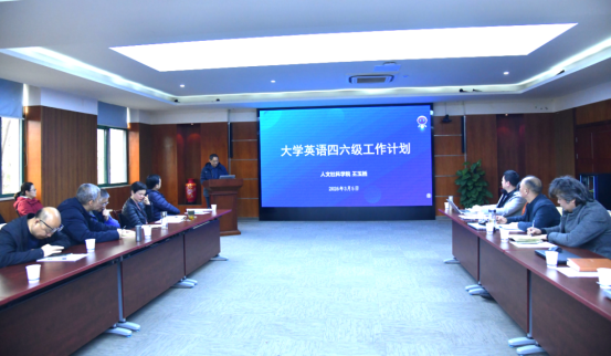 人文社科学院院长王玉括教授汇报四六级工作计划,2025年通过项目制改革、AI辅助教学及特色英语活动,有效提升四六级通过率;2026 年将进一步优化教学模式,把英语活动表现纳入评奖评优体系,营造良好学习氛围,以英语能力提升助力学生升学就业。