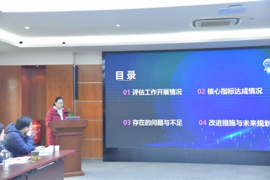 教学科研处副处长郝萌莉作教学质量状态数据分析。学校已构建“指标引领 + 多维监控 + 反馈改进”的立体化评估体系,在专业建设、学生竞赛等领域成效显著。2026年学校将推进课堂教学质量提升工程,完善多元协同的教学评价体系,强化教学过程管理。